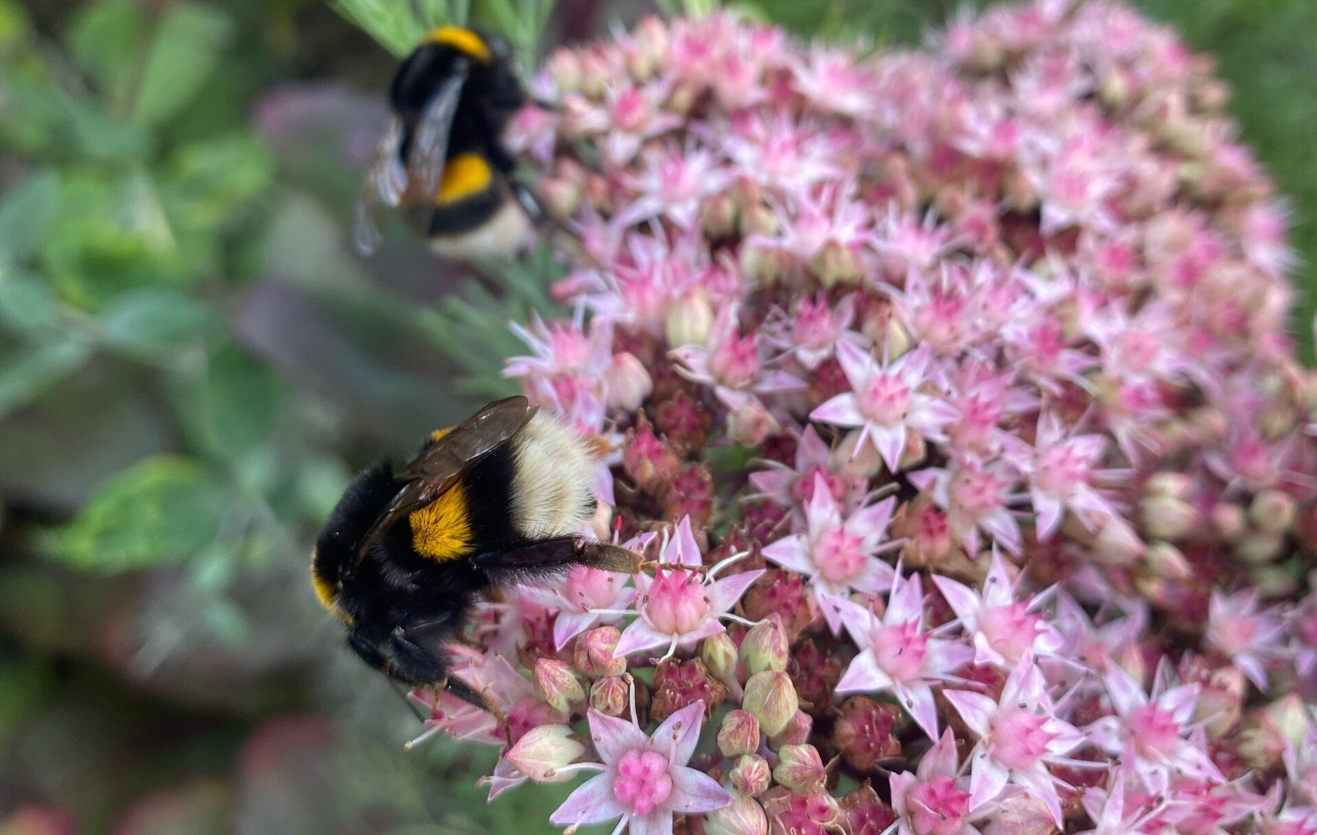 Foto: Aardhommels op Hemelsleutel (Hylotelephium telephium)