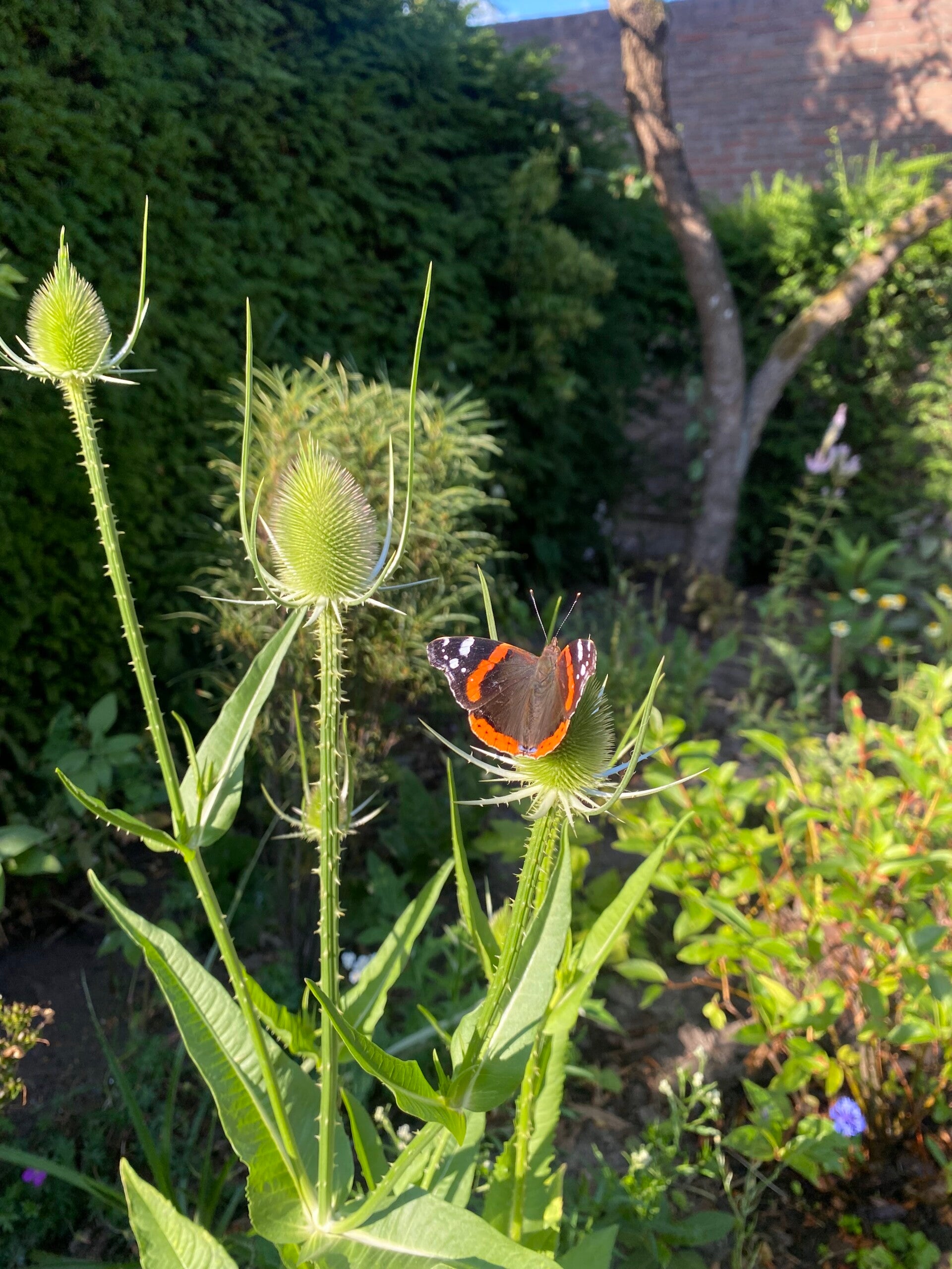 foto: Atalanta op de Grote Kaardenbol (Dipsacus fullonum)
